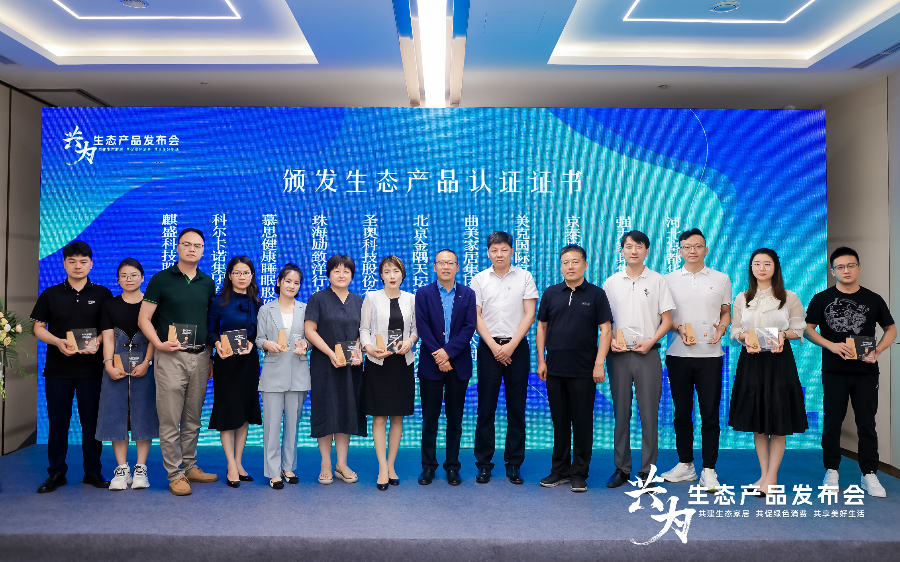 会上还发布了《生态产品认证技术规范家具》系列团体标准,并为首批获证的11家企业颁发生态产品认证证书。