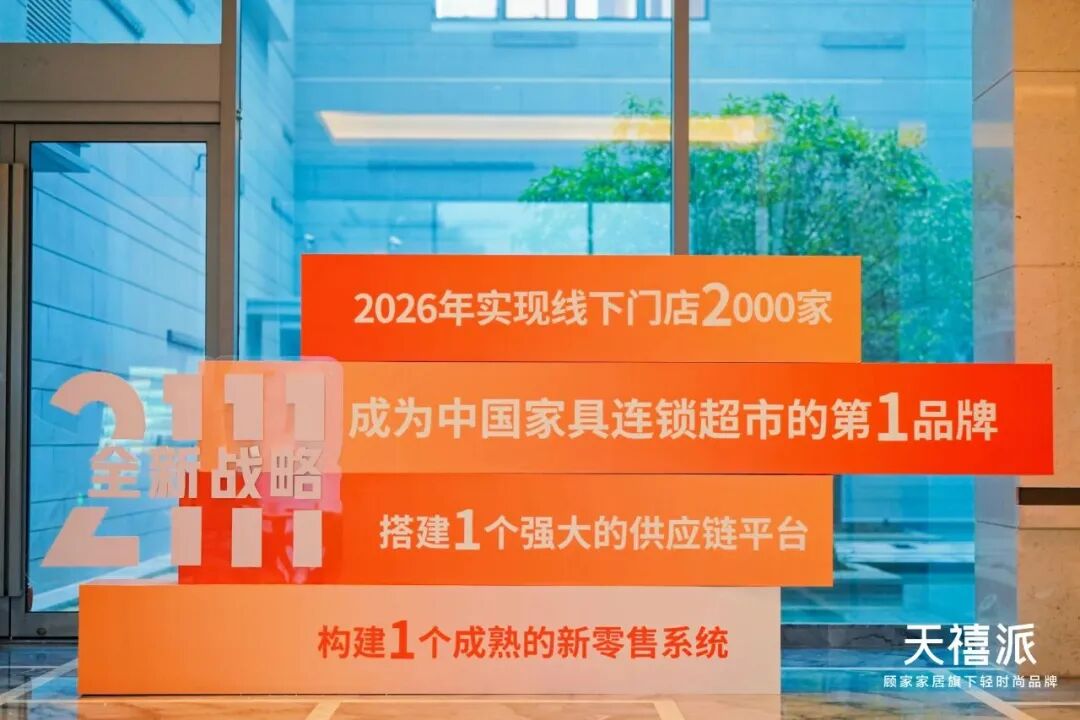 正是如此,天禧派的“野心”并不小。据透露,到2026年底,天禧派家具连锁超市预计实现线下门店2000家,打造1个成功的新零售模式,1个强大的供应链生态平台,成为中国家具连锁超市的第1品牌,以上就是天禧派全新的“2111”战略。