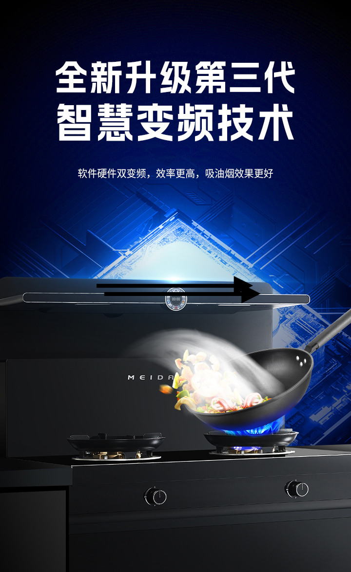 美大的智能烟机采用了先进的油烟感应技术,能够自动调节吸力,保持厨房空气的清新。这种智能烟机的引入,不仅保证了厨房的空气质量,也为用户提供了更加健康的烹饪环境。此外,结合AI智能烹饪技术,美大还能够优化烹饪过程中的火候,避免过度烹饪导致的有害物质释放,从根源上提升烹饪的健康性。