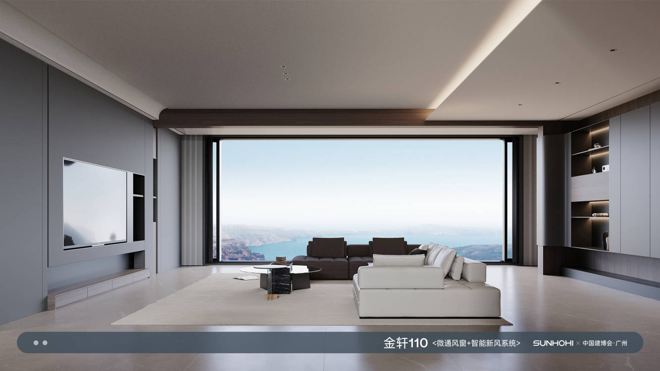 基于对消费需求和门窗新品趋势的深入研究,新豪轩门窗推出金轩110智能微通风窗、埃森105Max智能外开窗、观澜20智能全景门等潮流星品,通过圆弧异型玻璃、智能新风系统、大斜边压线设计、20mm极窄勾企,结合墙控、智能中控屏、手机APP等多种模式智能控制,打造科技与美学深度融合的门窗体验,满足未来人居的新想象。