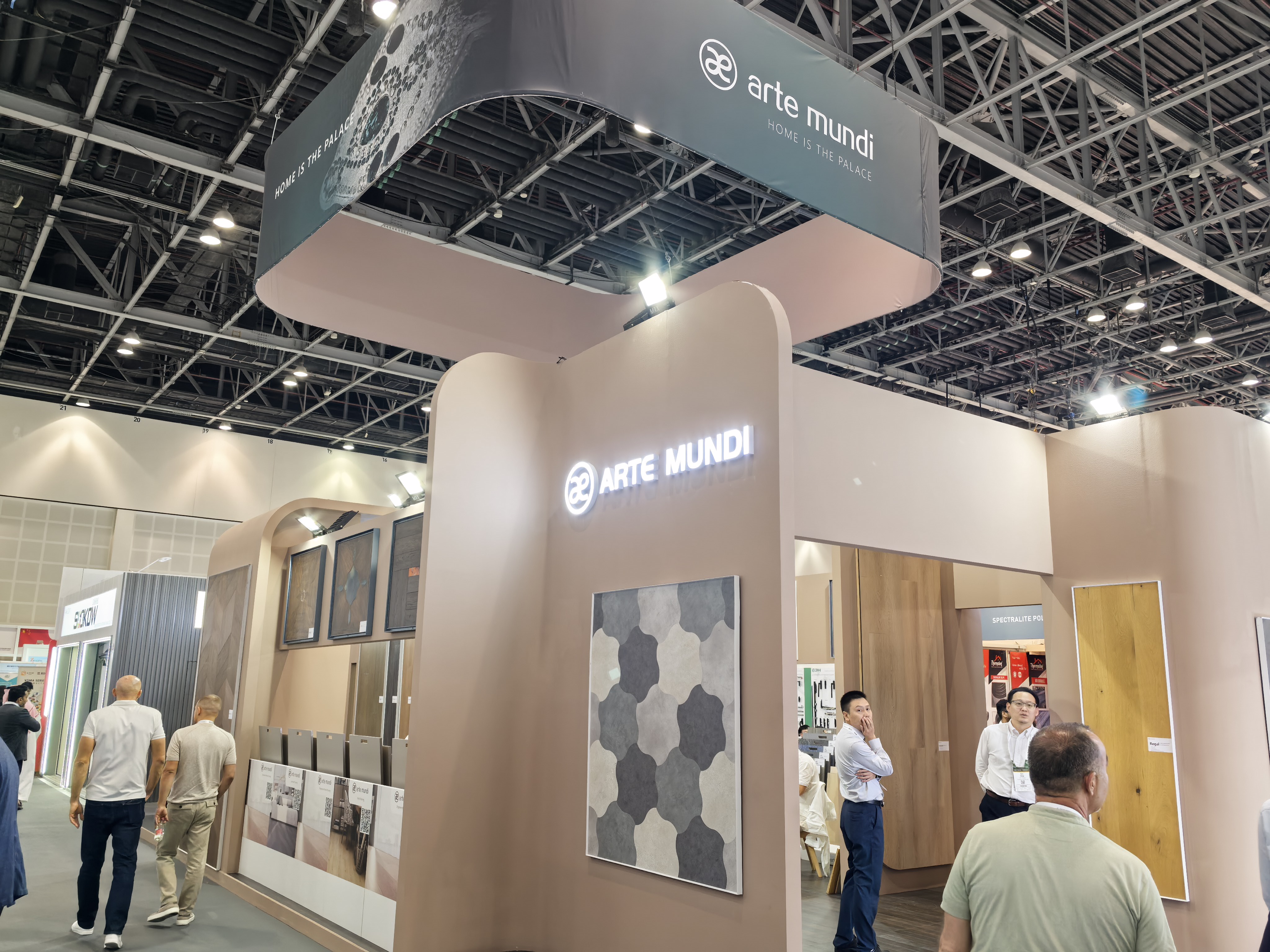 作为中东乃至全球范围内极具影响力的建材行业盛会,迪拜建材展不仅是展示行业创新成果的核心窗口,更是连接国际市场、促进全球商贸合作的重要桥梁。此次参展,书香门地集团精心打造了兼具东方韵味与现代奢雅感的展位空间,将「arte mundi」艺术地板系列的独特质感与艺术张力完美呈现,营造出沉浸式的美学体验空间,吸引了众多国际采购商、行业伙伴的驻足关注与深度交流。