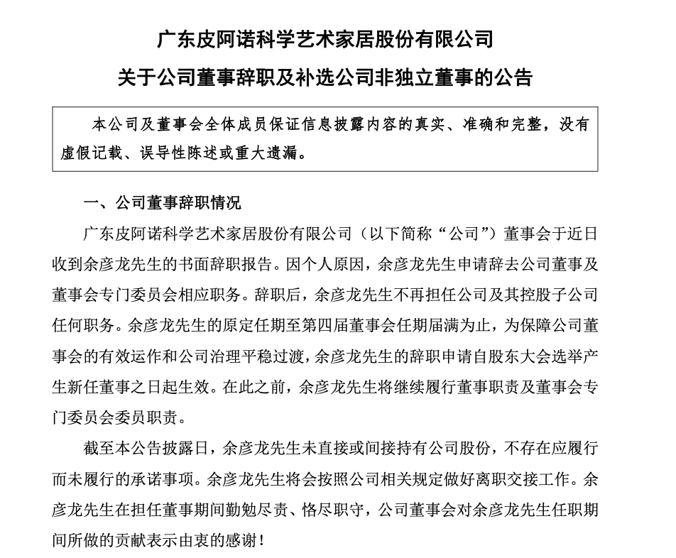 03.皮阿诺家居拟取消监事会,提名90后非独董候选人