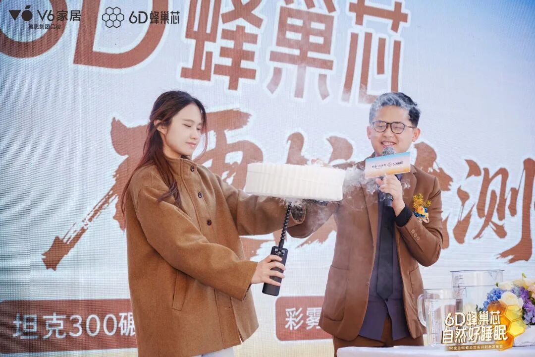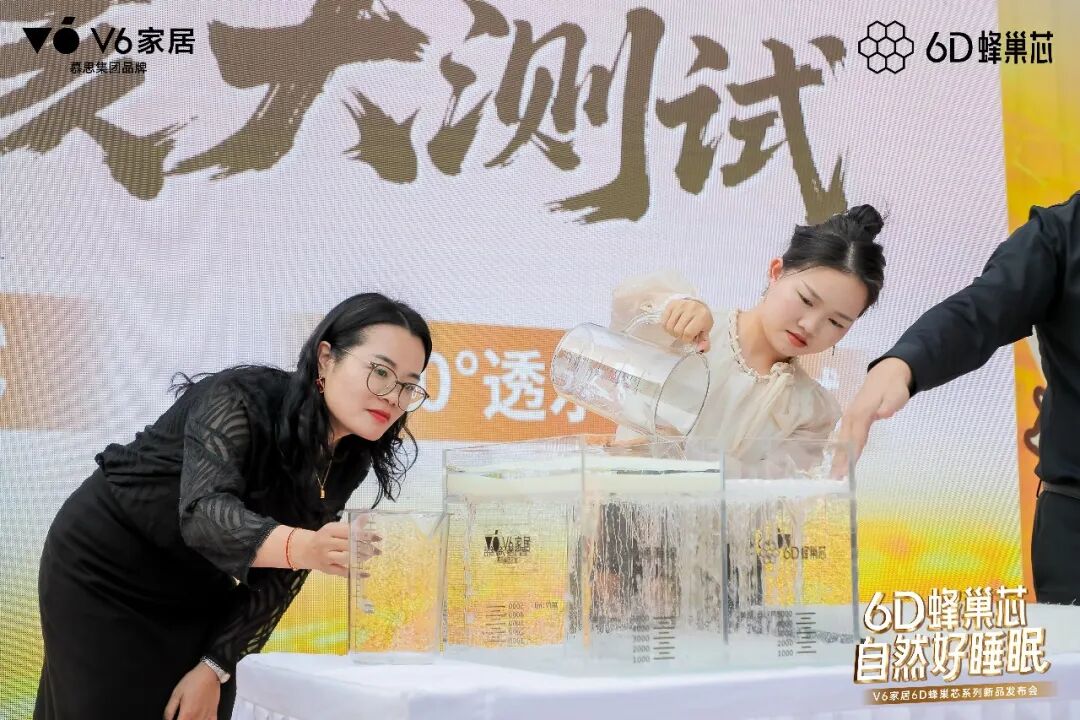 在技术能力不断夯实的同时,品牌建设也是V6 家居成功的重要因素。围绕 6D 蜂巢芯,V6 家居在全国多座城市举办6D蜂巢系列新品发布会,通过一系列直观且严谨的硬核测试,将技术背后的真实价值转化为消费者可感知、可验证的体验认知。这种持续的品牌投入,并非短期声量的释放,而是在市场层面不断积累信任,让消费者构建起稳定清晰的品牌认知。