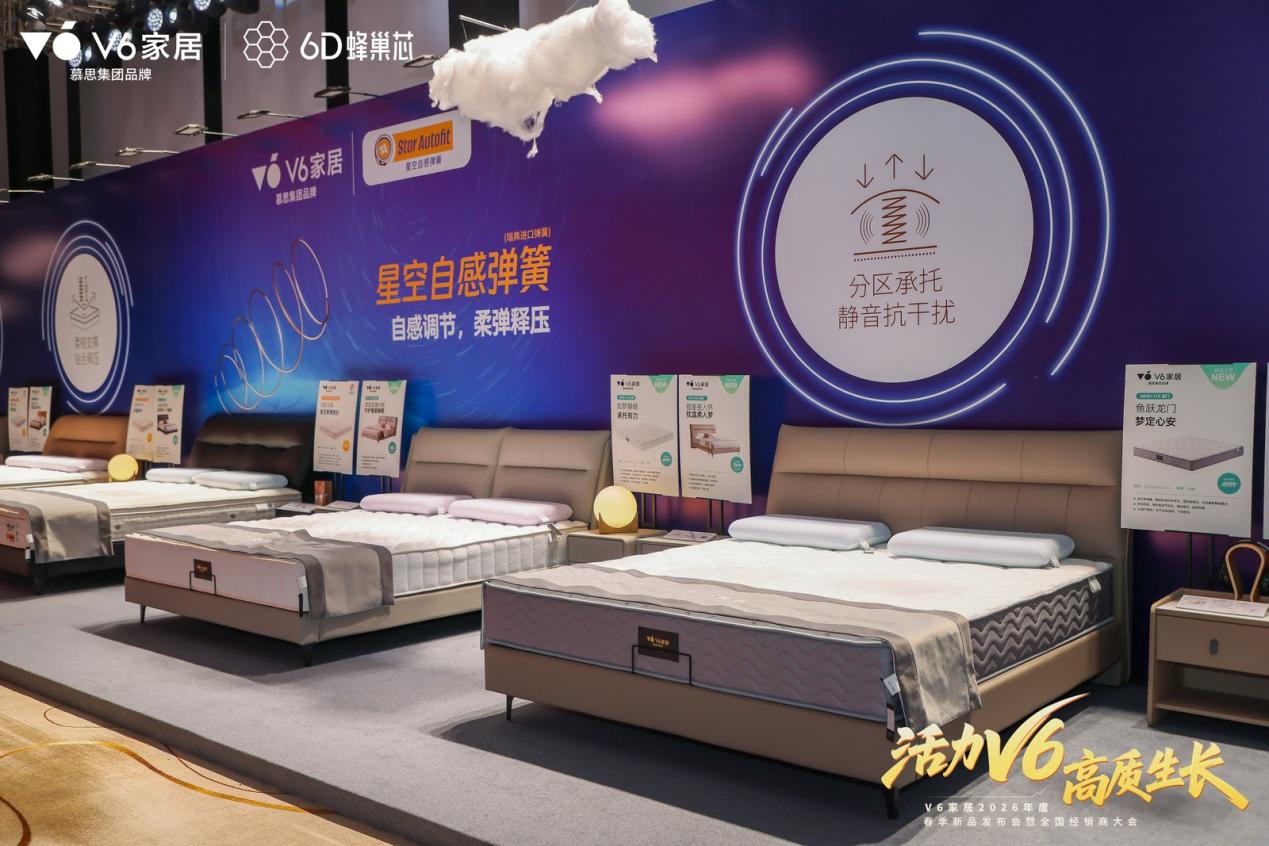 而通过“6D蜂巢芯”+“星空自感弹簧”系列产品的持续落地、“软体+定制”融合模式的深度推进及情绪价值与文化共鸣的创新表达,V6家居也正稳步构建起穿越周期、面向未来的高质量增长范式。