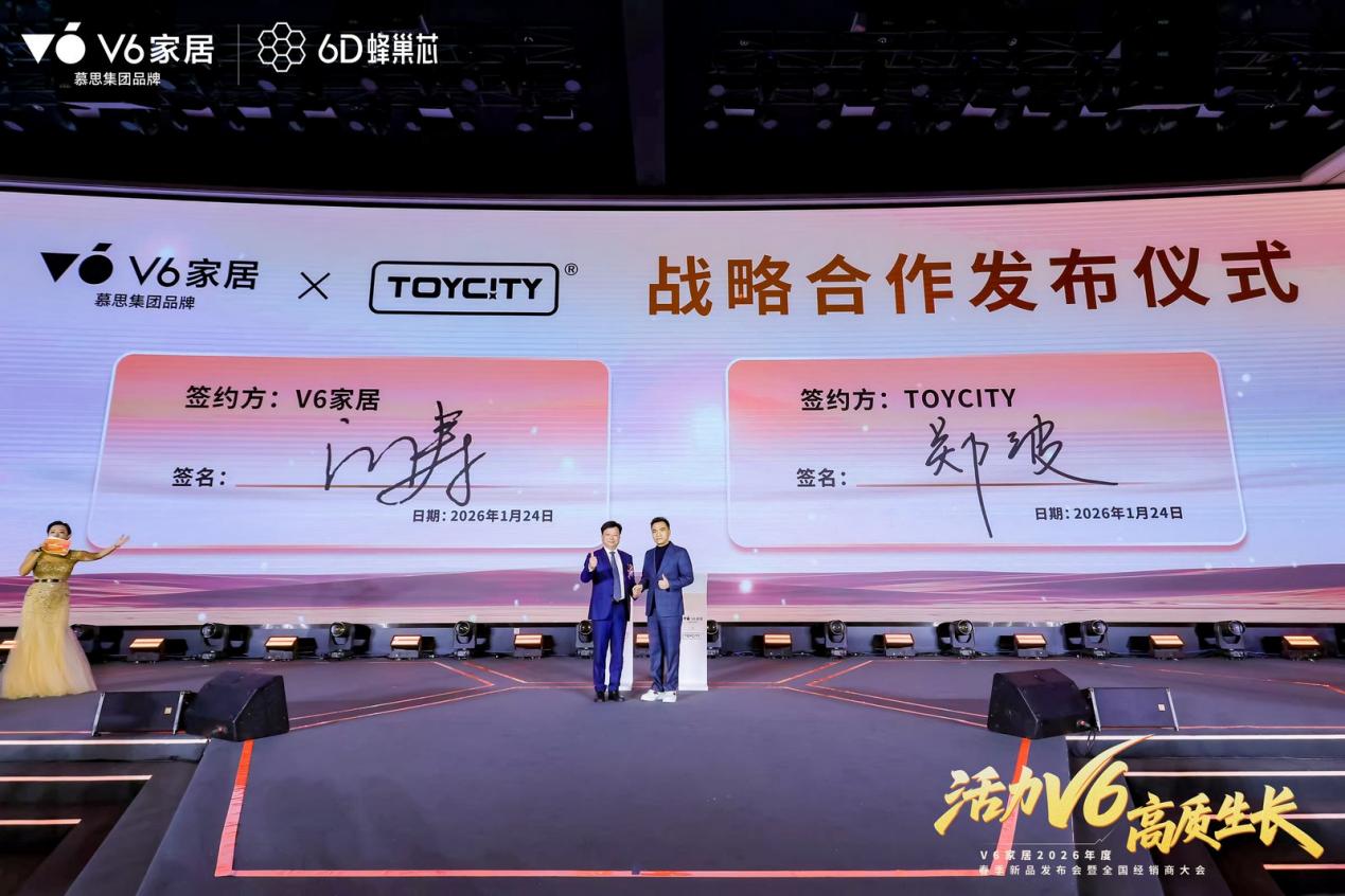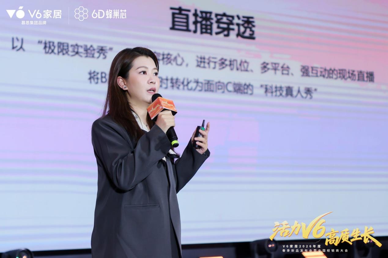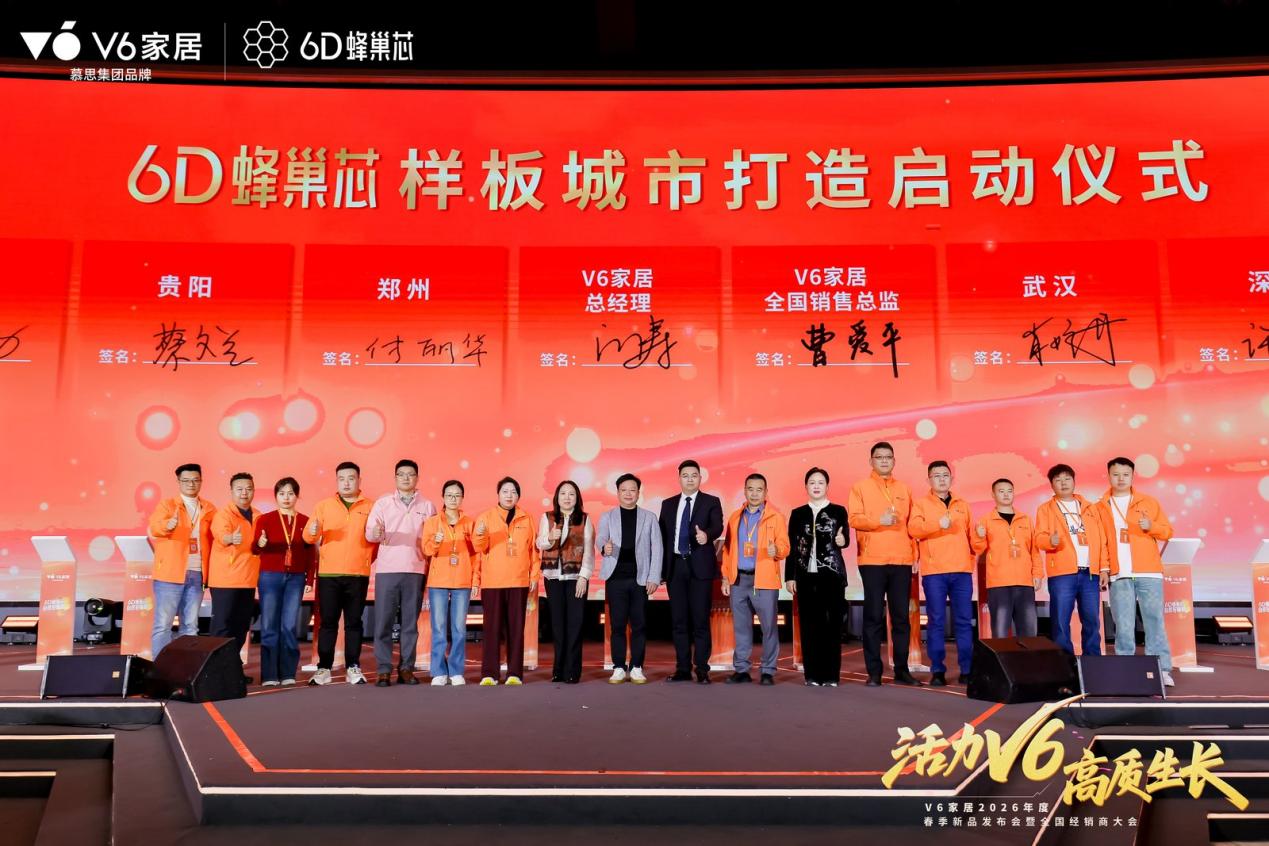 2026年,为持续推进6D蜂巢芯在终端市场的拓展,V6家居启动“6D蜂巢芯”样板城市打造启动仪式,旨在以高品质产品为基础,结合高力度的帮扶政策,助力更多经销商实现业绩增长。