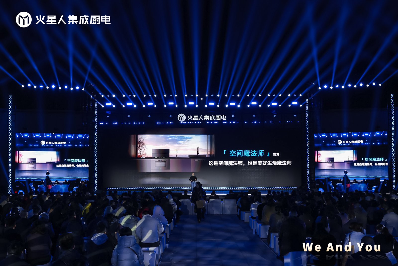 “We”,是迭代升级后的火星人,是用科技重构生活的美学践行者。不再是单纯的厨电制造商,火星人以“重构厨房空间,把空间还给生活”为核心主张,将近百项专利技术融入空间魔法师套系,完成了从“功能满足”到“美学赋能”的品牌升维。