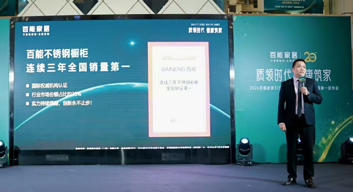 3月15日,正值国际消费者权益日,「质领时代 健康筑家」百能家居315品质生活节暨全国销量第一发布会在成都富森美家居隆重举行。本次盛会由百能家居携手优居研究院共同举办,汇聚行业协会领导、专家学者、设计师、媒体代表,共同见证百能不锈钢橱柜连续三年全国销量第一的荣耀时刻,深度解读不锈钢家居的品质密码,多维重塑不锈钢家居的价值标准。