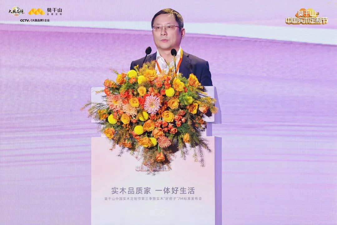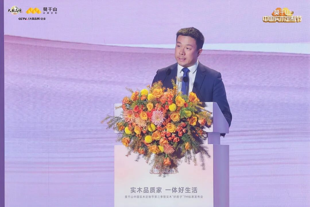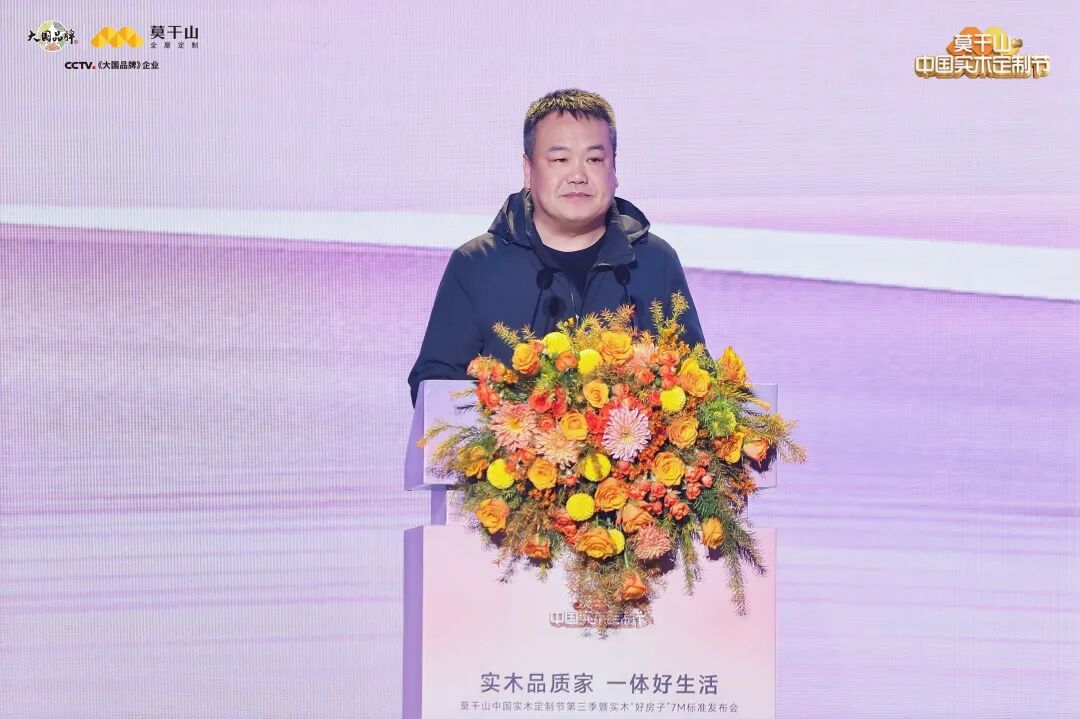 真正的行业引领,不止于产品的精进,更在于标准的建立。莫干山大家居总经理刘元秀,做《实木好房子·共筑品质新生活》主题汇报,他深度解读莫干山实木“好房子”7M标准体系。