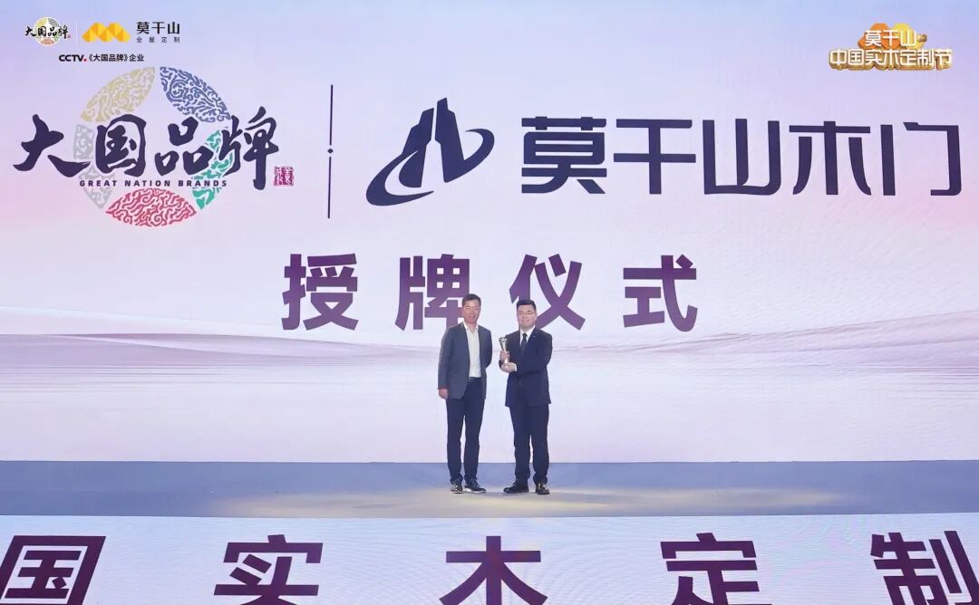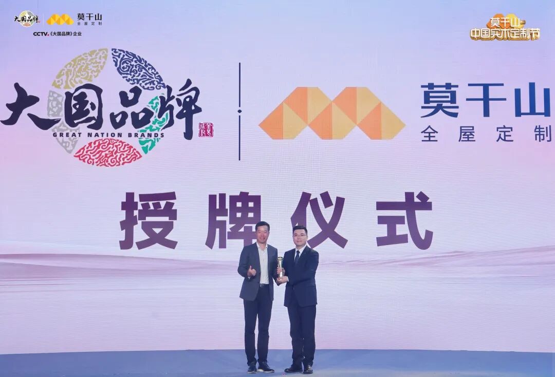 盛典现场,迎来极具分量的时刻——CCTV《大国品牌》授牌仪式。接过奖杯,不仅是荣誉,更是责任。莫干山全屋定制以实至名归的“大国品牌”身份,正式站上国家平台,向时代宣告:中国实木定制,正以自信从容的姿态,定义全球家居的价值坐标。
