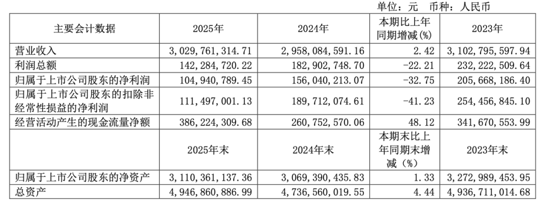 4月22日,三棵树涂料股份有限公司(简称“三棵树”)发布2025年年度报告。2025年,三棵树实现营业收入125.27亿元,同比增长3.49%;净利润7.75亿元,同比增长133.45%。