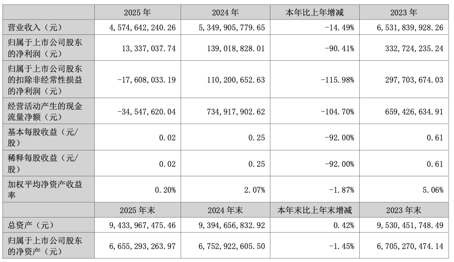 3月30日,大亚圣象家居股份有限公司(简称“大亚圣象”)发布2025年年度报告。报告显示,大亚圣象2025年实现营业收入45.75亿元,同比下降14.49%,净利润1333.70万元,同比下降90.41%。