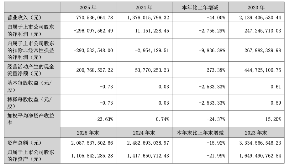 4月22日,火星人集成厨电(简称“火星人”)发布2025年年度报告。报告显示,火星人2025年实现营业收入7.71亿元,同比下降44.00%;归母净利润-2.96亿元,同比降幅巨大。