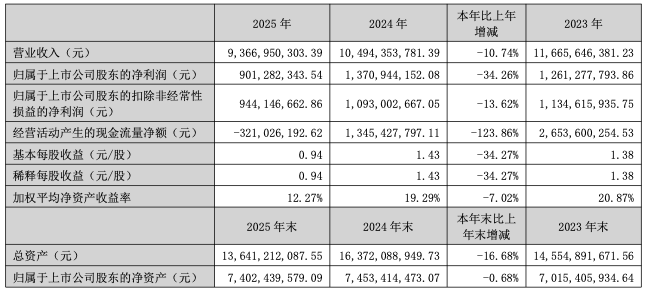 4月17日,索菲亚家居股份有限公司(简称“索菲亚”)发布2025年年度报告。报告显示,索菲亚2025年实现营业收入93.67亿元,同比下滑10.74%;净利润9.01亿元,同比下滑34.26%。