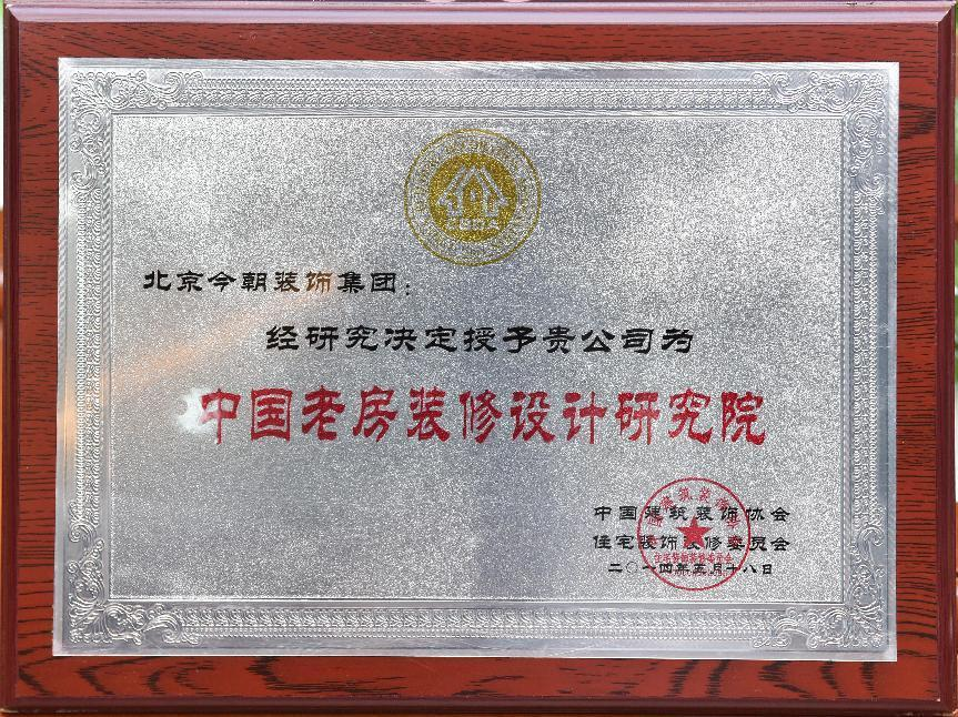 2014年 中装协授予今朝装饰 "中国老房装修设计研究院" 称号